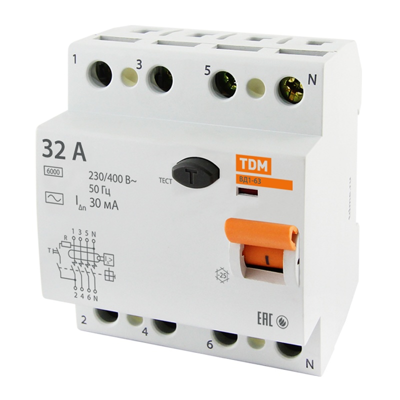 Устройство защитного отключения ВД1-63, 32А, 30мА, тип АС, 4П