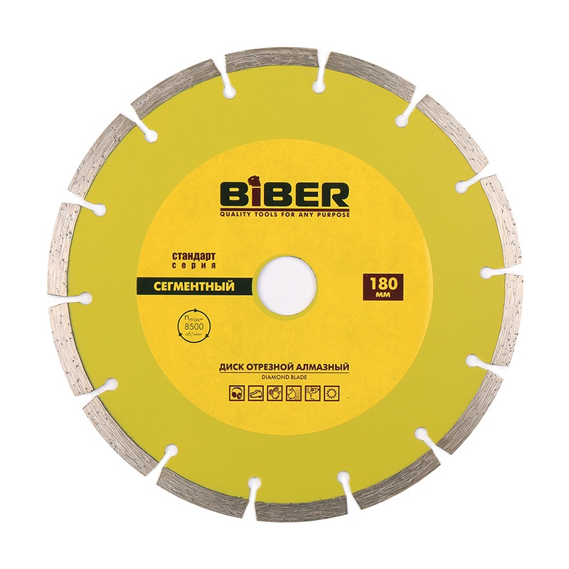Используется в качестве насадки на УШМ (болгарки), электрические плиткорезы и штроборезы. Предназначен для сухой резки бетона, кирпича, керамогранита, гранита, мрамора и другого природного и искусственного камня. Представляет собой насадку из металла, на режущую кромку которой нанесена абразивная масса с алмазной крошкой. Сегментные диски являются несомненным лидером по производительности, так как турбулентные потоки воздуха создаваемые сегментами охлаждают диск в процессе распиловки, давая работать достаточно долго беспрерывно. Дают грубый срез, который нуждается в дополнительной шлифовке при использовании заготовки в отделочных работах.