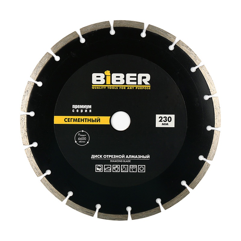 Используется в качестве насадки на УШМ (болгарки), электрические плиткорезы и штроборезы. Предназначен для сухой резки бетона, кирпича, керамогранита, гранита, мрамора и другого природного и искусственного камня. Представляет собой насадку из металла, на режущую кромку которой нанесена абразивная масса с алмазной крошкой. Сегментные диски являются несомненным лидером по производительности, так как турбулентные потоки воздуха создаваемые сегментами охлаждают диск в процессе распиловки, давая работать достаточно долго беспрерывно. Дают грубый срез, который нуждается в дополнительной шлифовке при использовании заготовки в отделочных работах. Серия Премиум отличается особенными свойствами режущей кромки (за счет повышенной концентрации алмазов), что увеличивает производительность и долговечность диска.