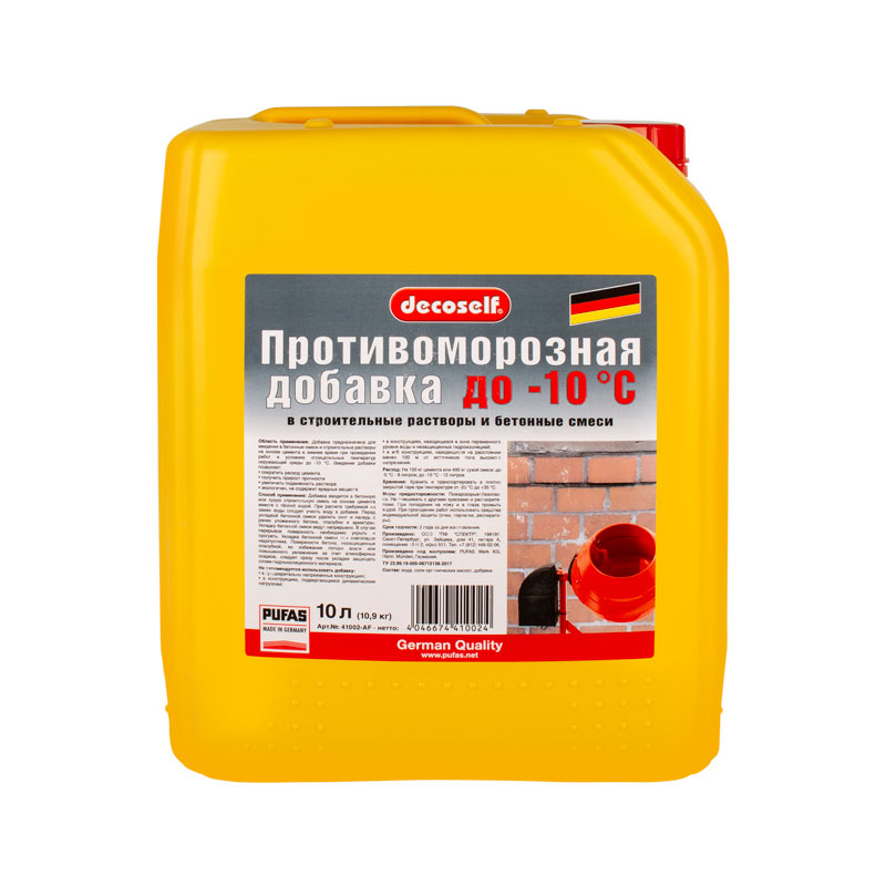 Противоморозная добавка для бетона Pufas до -10 °С, 10 л = 10,9 кг