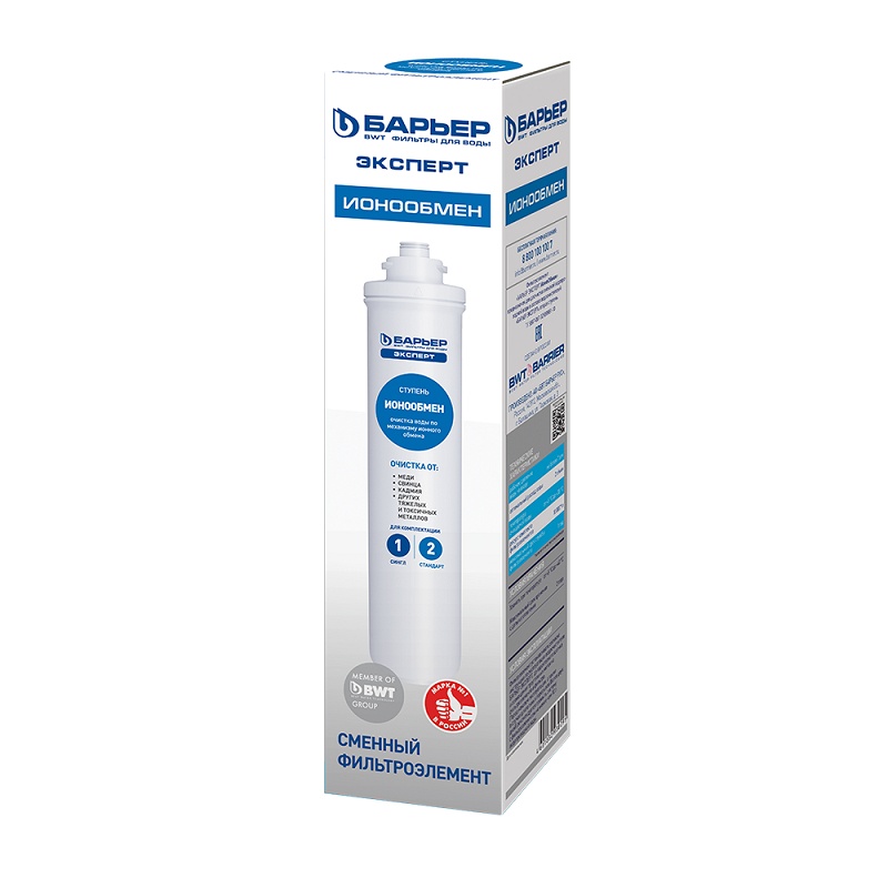 Картридж БАРЬЕР Эксперт Ионообмен устанавливается во вторую ступень системы Эксперт Стандарт. Используется для эффективного удаления из состава воды хлора и тяжелых металлов.
