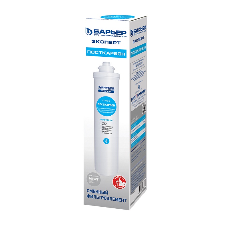 Картридж БАРЬЕР Эксперт Посткарбон устанавливается в третью ступень проточных фильтров БАРЬЕР Эксперт. Выполняет функцию кондиционирования и финишной очистки холодной водопроводной воды.