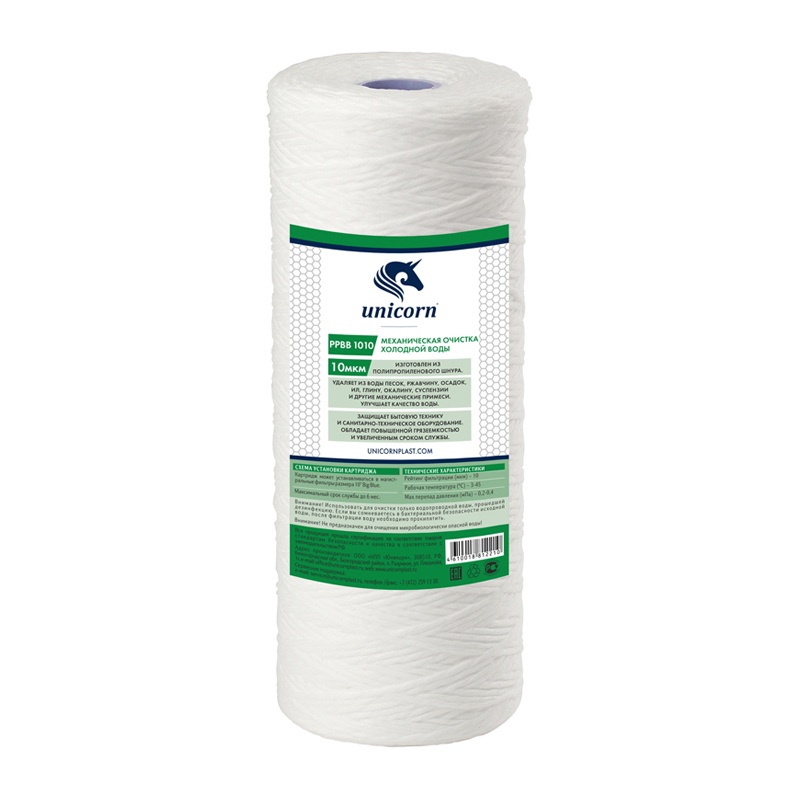 Картриджи изготовлены из сплетенного полипропиленового шнура. Способ сплетения шнура дает возможность задерживать большие частички загрязнений на внешней стороне, а меньшие - в его внутреннем слое, что удлиняет срок его эксплуатации. Изготовлен из особо прочных материалов.