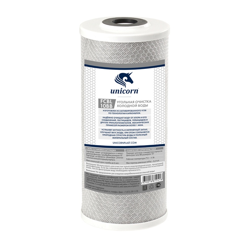 Картридж устраняет из воды 99% хлора и 96% свинца. Поверхность спеченного в блок активированного угля в два раза больше, чем обычного активированного угля. Отлично устраняет плохой вкус и запах воды, а также токсичные органические соединения.