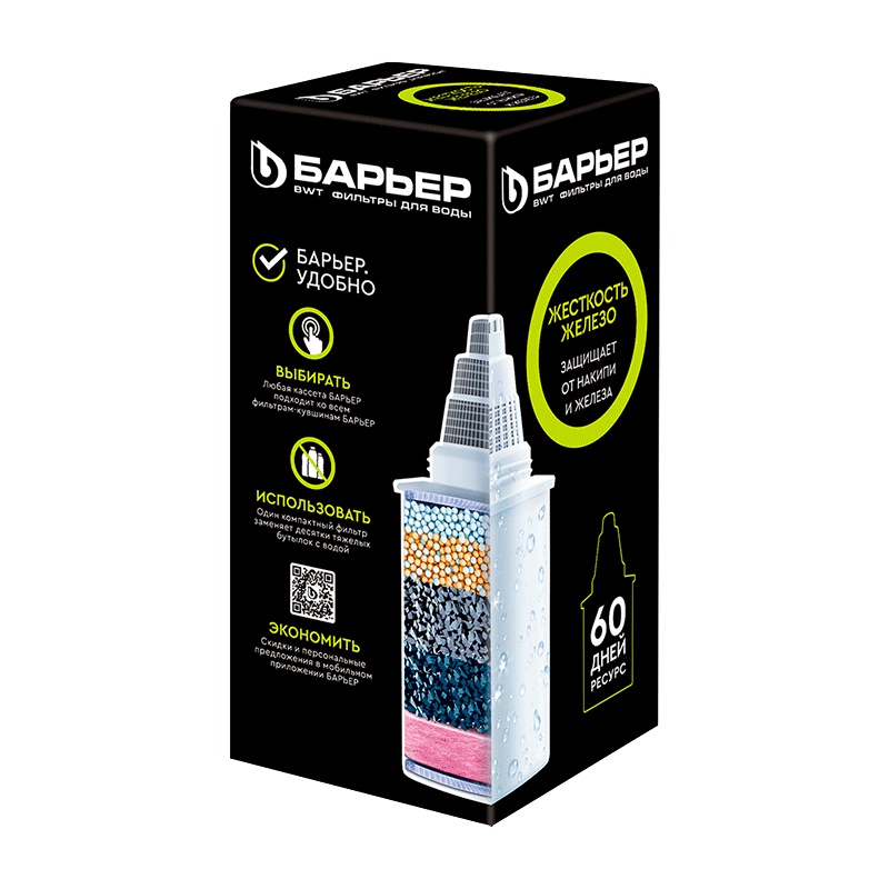 Сменная кассета Барьер ""Комплекс"" (Жесткость/Железо) ресурсом 350 литров предназначена для комплексной очистки воды от солей жесткости, тяжелых металлов, органических и неорганических примесей, хлора и хлорорганических примесей.