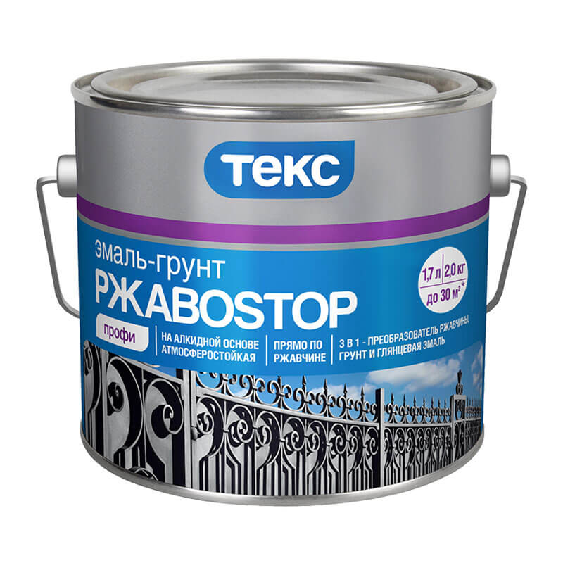 Преобразователь ржавчины, антикоррозионная грунтовка, эмаль. Позволяет проводить окраску металлических поверхностей без дополнительного использования грунтовки и преобразователя ржавчины. Предназначен для окраски металлических поверхностей с остатками ржавчины внутри и снаружи помещений (гаражи, ограды, решетки), для окраски деревянных поверхностей. Расход: 1 кг на 10-15 м² в один слой. Время высыхания: "от пыли" - 5-7 часов, следующий слой можно наносить через сутки.