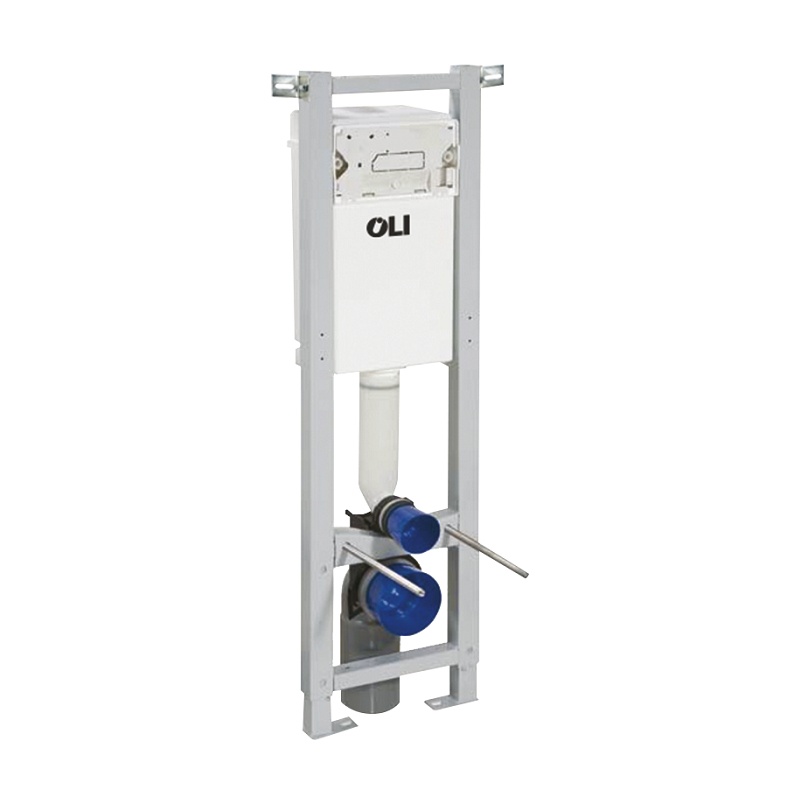 Позволяет "скрытно" установить бачок слива, оставляя на виду только сам унитаз и кнопку слива. Основными элементами инсталляции являются специальная стальная рама с установленным на ней бачком, в котором находятся сливной и наливной клапан. Подходит для монтажа к капитальным несущим стенам и к легким стенам на стадии возведения перегородки прямо в стальной профиль, который потом обшивают гипсокартонными листами.