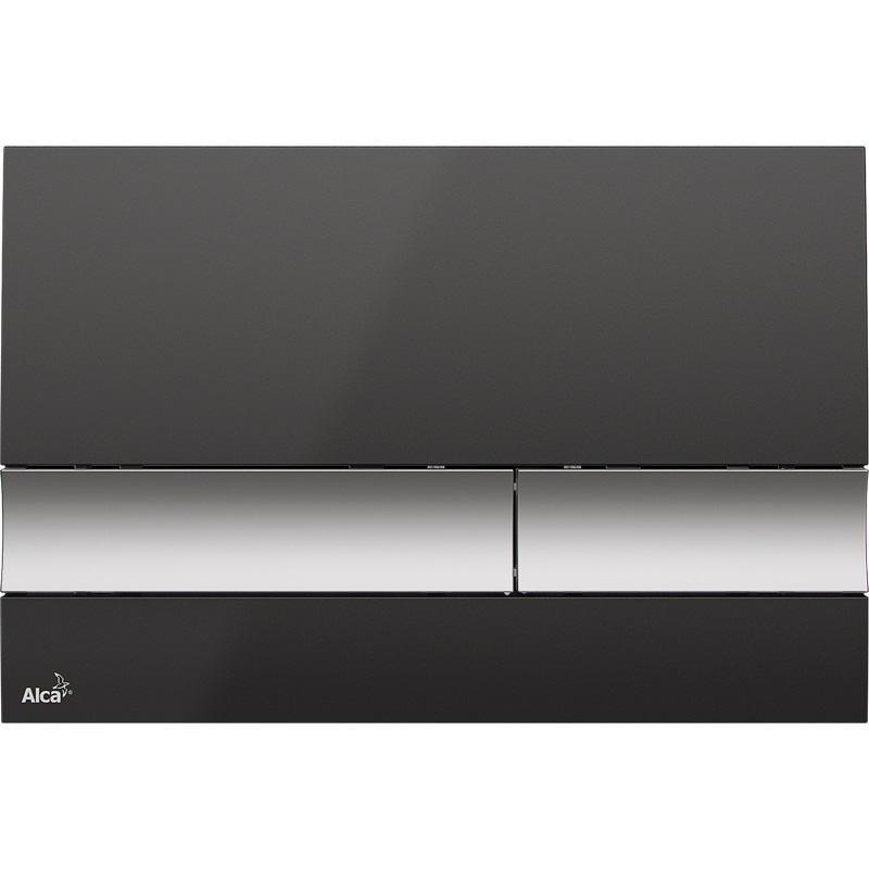 Кнопка управления Alcaplast M1728-2 системы инсталляции изготовлена из ударопрочного пластика, основная панель из черного цвета, кнопки малого и большого смыва - матовый хром, вогнутой формы. Предназначена для осуществления смыва в скрытых системах инсталляции Alcaplast.