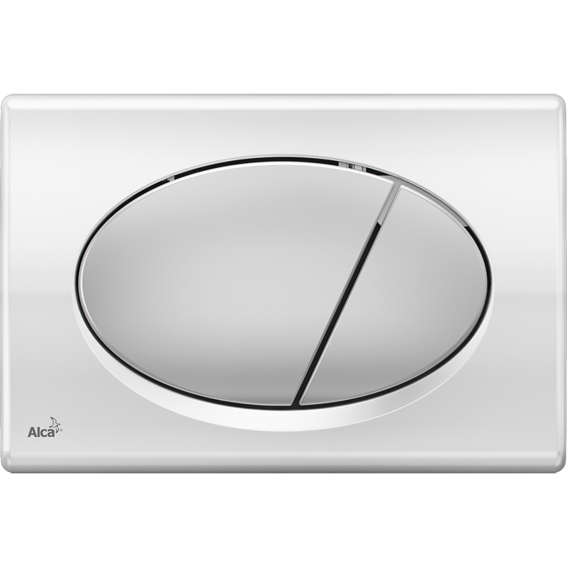 Кнопка управления Alcaplast M73 системы инсталляции изготовлена из пластика, основная панель выполнена в цвете глянцевый хром, кнопки смыва - матовый хром. Предназначена для осуществления смыва в скрытых системах инсталляции Alcaplast.