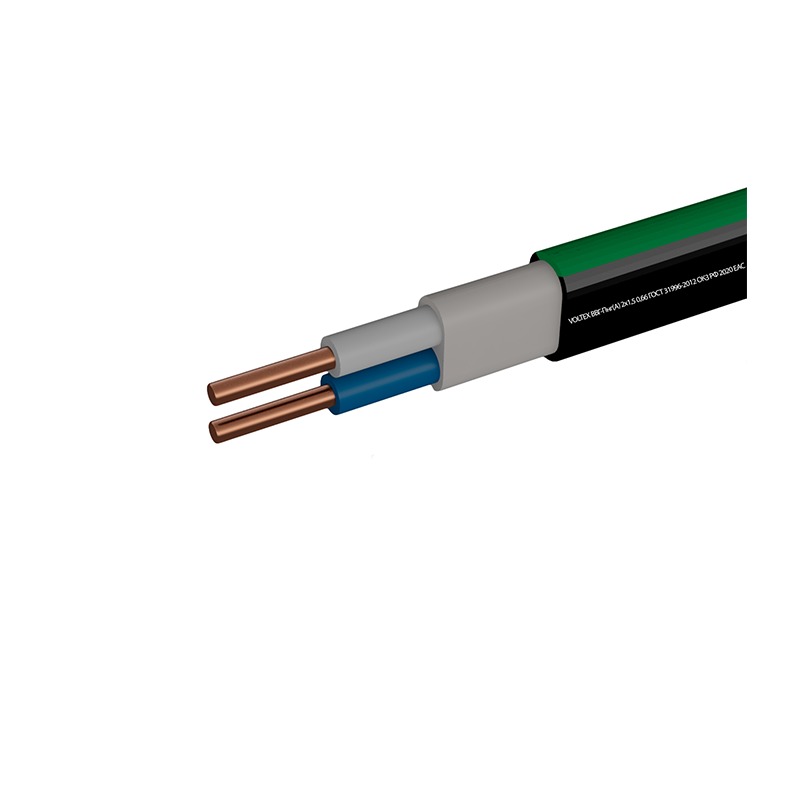 Применяется при прокладке в блоках, на специалированных кабельных эстакадах, в промышленных помещениях, на электростанциях, в распределительных и осветительных устройствах, а также в обычных жилых помещениях в качестве электропроводки при условии одиночной прокладки. Имеет плоскую форму и удобен для прокладки под штукатуркой и в штробе. Оболочка выполнена из пластиката пониженной горючести. Гарантированный срок службы кабеля - 25 лет.