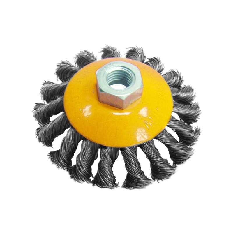 Используется в качестве насадки для УШМ (болгарок) для крацевания поверхностей. Посадочное отверстие - гайка М14. Стальная витая проволока диаметром 0,5 мм, увеличивает жесткость, прочность и износостойкость.