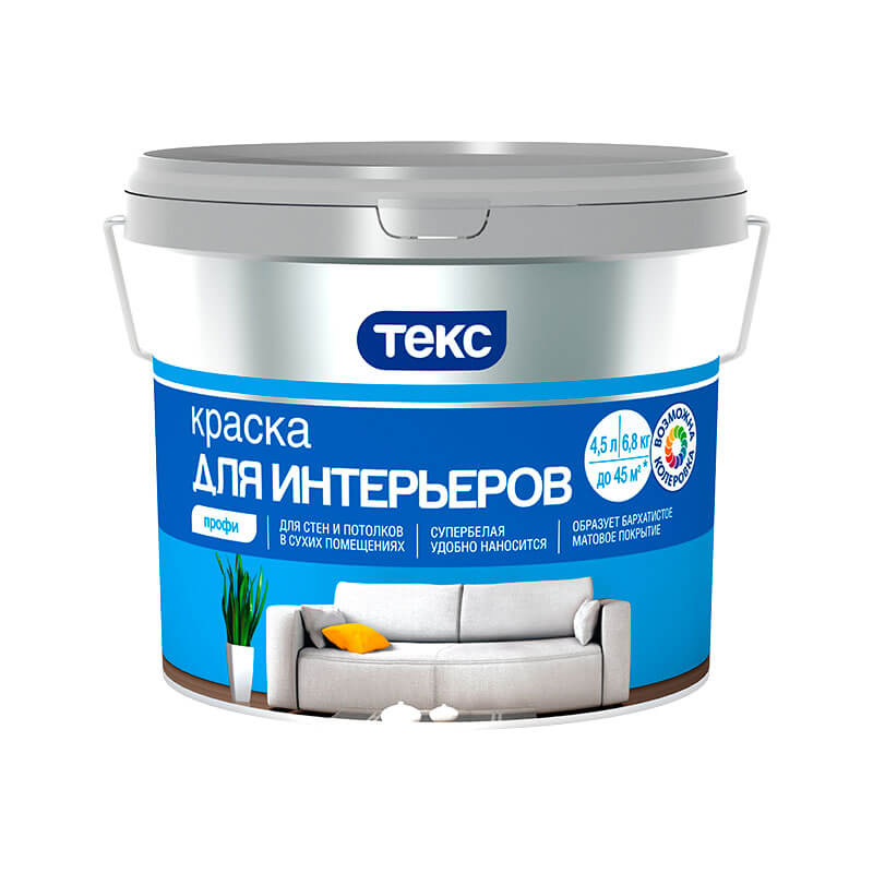 Краска в/д интерьерная Текс Профи супербелая (4,5 л)
