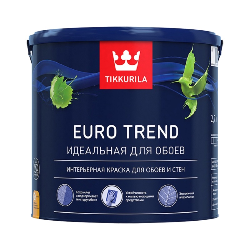 Краска для обоев и стен Tikkurila EURO TREND А матовая (2,7 л)