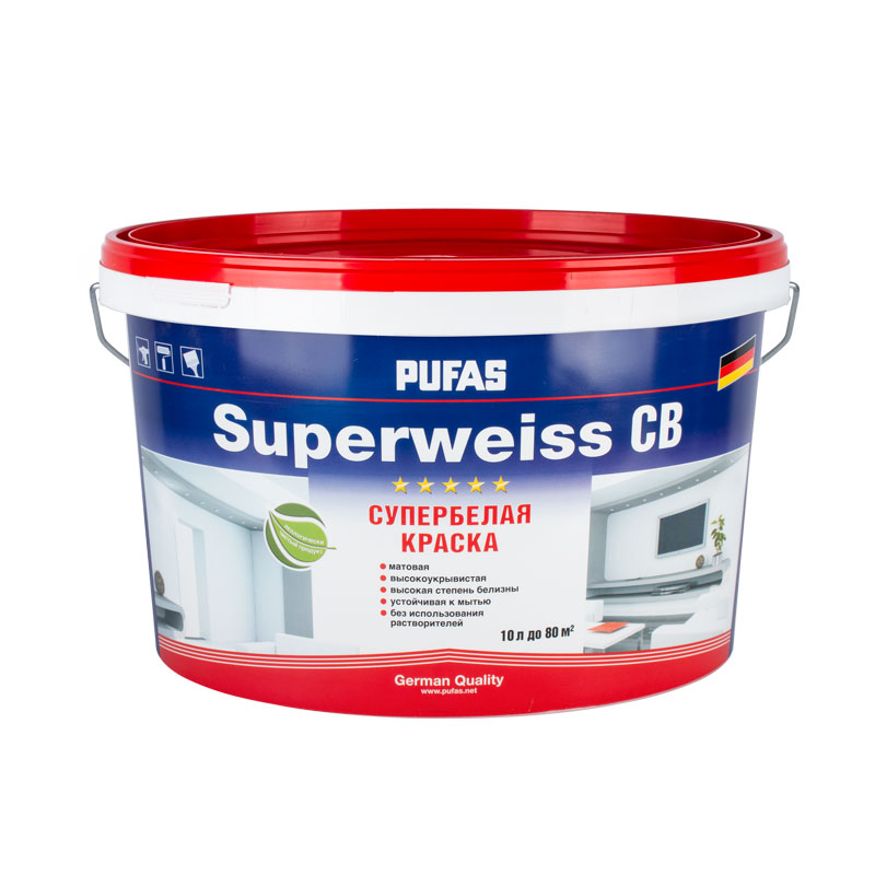 Краска интерьерная Pufas Superweiss моющаяся супербелая, мороз. (10 л)