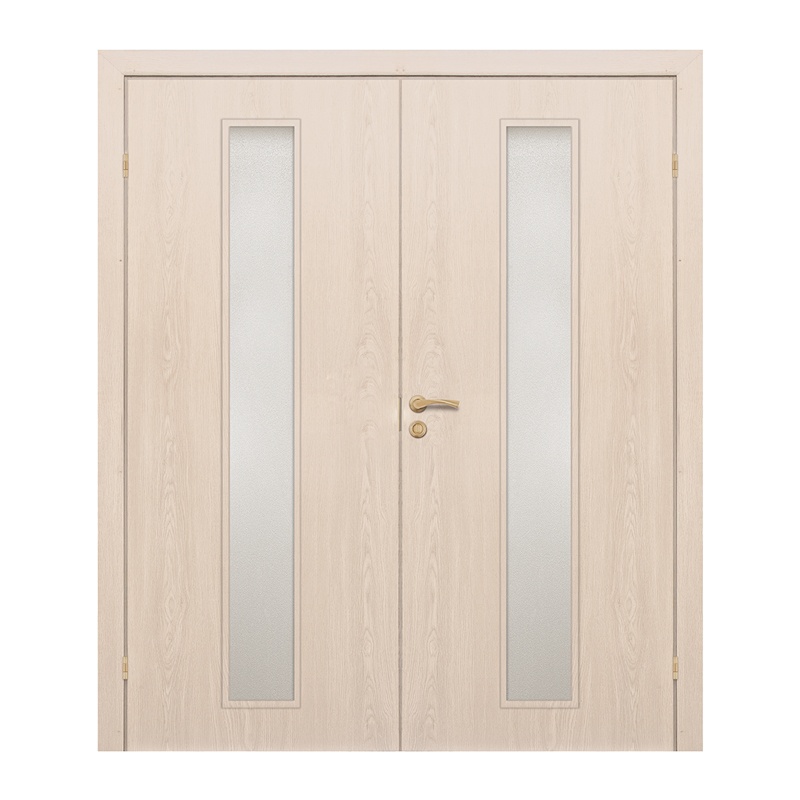 Полотно дверное ответная часть без притвора остекленное, ламинированное. Каркас - массив сосны и(или) МДФ. Сотовое картонное заполнение. Поверхность - плита ХДФ. Установлены ответная планка замка типа 0028, два врезных шпингалета, отфрезерованы посадочные места для крепления петель. Предназначена для комплектации двупольного дверного блока.