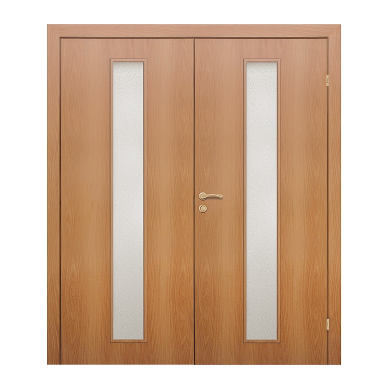 Полотно дверное ответная часть без притвора остекленное, ламинированное. Каркас - массив сосны и(или) МДФ. Сотовое картонное заполнение. Поверхность - плита ХДФ. Установлены ответная планка замка типа 0028, два врезных шпингалета, отфрезерованы посадочные места для крепления петель. Предназначена для комплектации двупольного дверного блока.