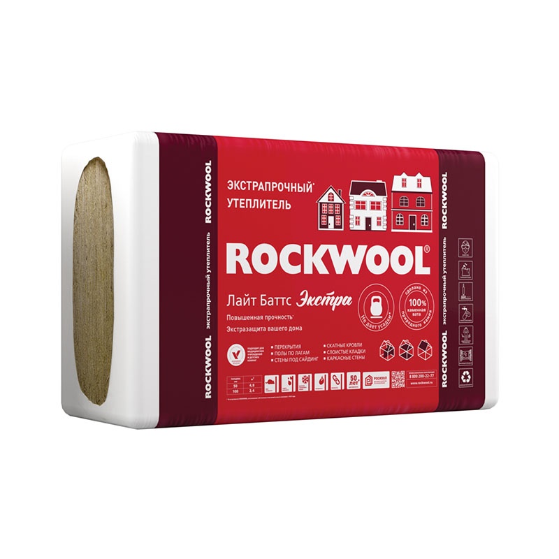 Утеплитель ROCKWOOL ЛАЙТ БАТТС ЭКСТРА 1000х600х50 мм, 8 шт