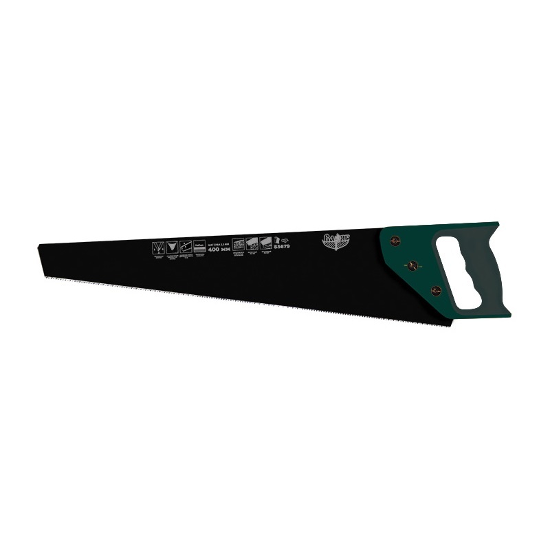 Предназначена для качественной распиловки деревянных деталей. Мелкий зуб. Инструментальная сталь У8. Трехгранная заточка. Импульсная закалка зуба. Усиленное полотно. Специальное низкофрикционное антикоррозийное покрытие. Обрезиненная противоскользящая рукоятка.