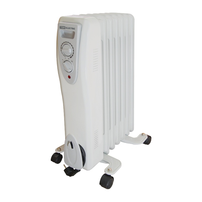 Предназначен для обогрева различных помещений. Полая герметичная металлическая конструкция, которая наполнена специальным минеральным маслом. В качестве нагревательного элемента используется ТЭН с тремя ступенями мощности и расположенный в нижней части радиатора. Устройство работает от сети 220 В. Площадь обогрева: 15 м2.