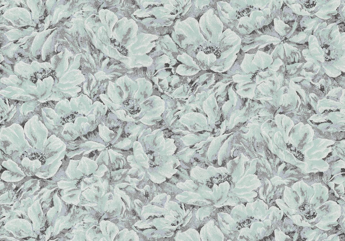Коллекция выполнена в технике а-ля гобелен; объемные фактурные цветы полностью заполняют полотно рулона, плавно перетекая от одного цветка к другому, создается единое цветочное поле.