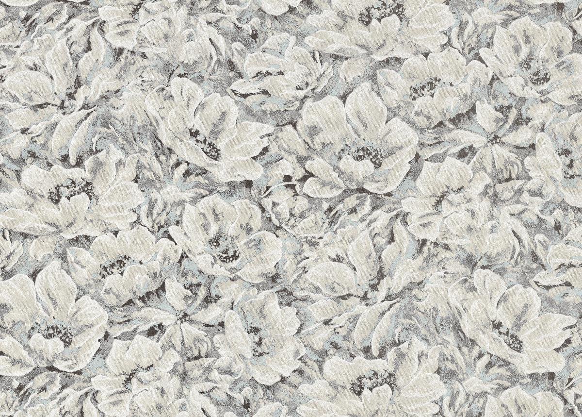 Коллекция выполнена в технике а-ля гобелен; объемные фактурные цветы полностью заполняют полотно рулона, плавно перетекая от одного цветка к другому, создается единое цветочное поле.