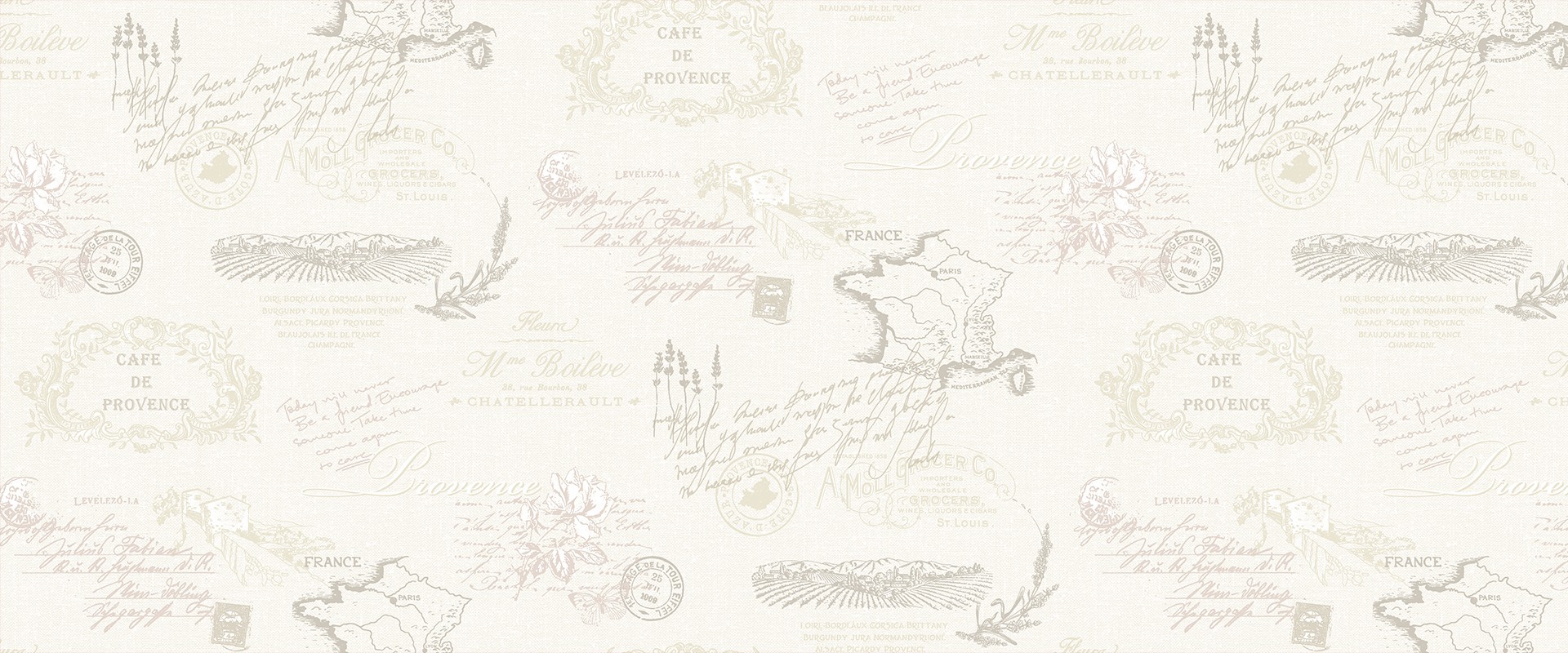 Изысканная простота дизайна отлично вписывается в стиль французского Provence. Действительно, очень приятные нежные природные сочетания цветов в коллекции обоев CAF? помогут сделать ваше, даже самое, маленькое уютное гнездышко комфортным, удобным и наполненным душевным теплом.