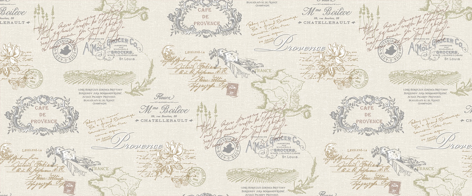 Изысканная простота дизайна отлично вписывается в стиль французского Provence. Действительно, очень приятные нежные природные сочетания цветов в коллекции обоев CAF? помогут сделать ваше, даже самое, маленькое уютное гнездышко комфортным, удобным и наполненным душевным теплом.