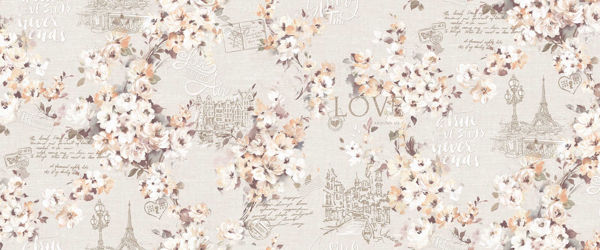Цветы бесконечный источник вдохновения. И этот вечный тренд - Прованс в современном исполнении от STENOVA DESIGN не оставит равнодушным не одну женщину любого возраста. Романтики никогда не бывает слишком много, поэтому чтобы усилить эффект, добавили в качестве эмоциональных сигналов контурные рисунки-скетчи: письмо любимой женщине, сердечко с ключиком, немного Парижа и фасадная линия набережной канала в Амстердаме.