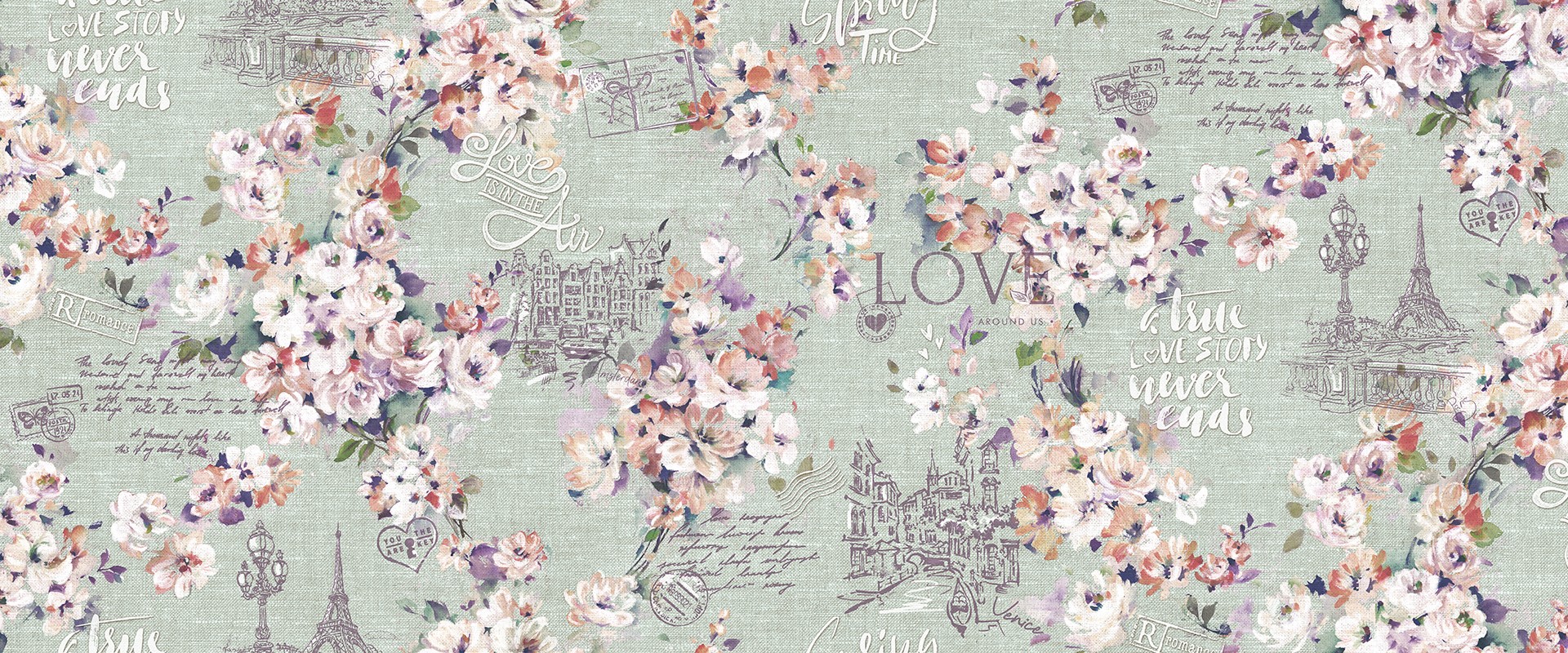 Цветы бесконечный источник вдохновения. И этот вечный тренд - Прованс в современном исполнении от STENOVA DESIGN не оставит равнодушным не одну женщину любого возраста. Романтики никогда не бывает слишком много, поэтому чтобы усилить эффект, добавили в качестве эмоциональных сигналов контурные рисунки-скетчи: письмо любимой женщине, сердечко с ключиком, немного Парижа и фасадная линия набережной канала в Амстердаме.