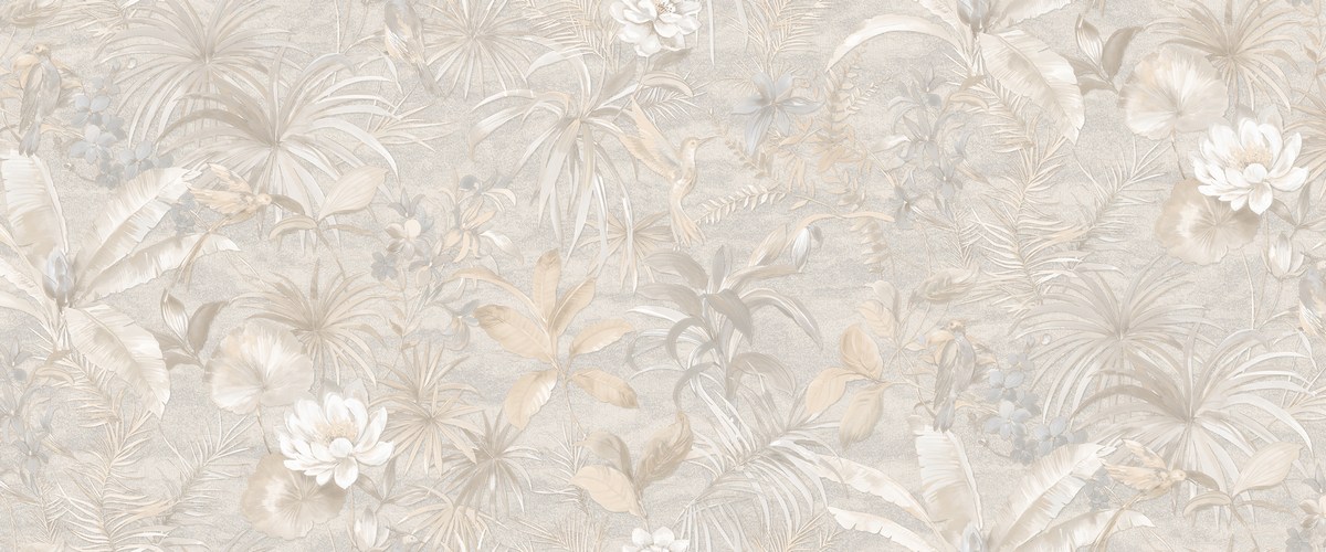 Ботаника и тропические мотивы - неиссякаемый и вдохновляющий источник для декора стен. Коллекция AMAZONIA от Victoria Stenova станет прекрасным украшением дома, его стилеобразующим элементом или ярким акцентом. Причудливые растения и птички, любовно прорисованы и выстроены в равномерную композицию, которая перекликается с великолепной сложной структурой фона, напоминающей песчаные дюны.