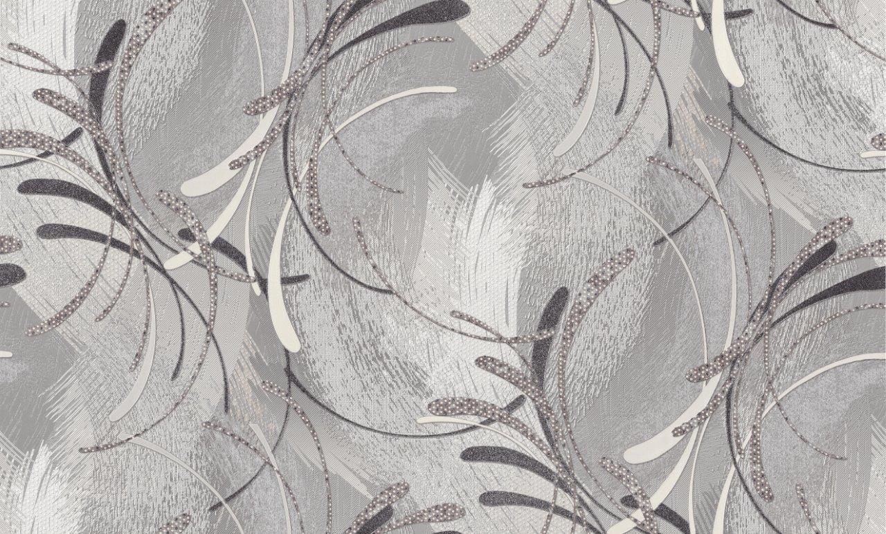 Потрясающее сочетание эффектных линий-дуг, крупных мазков с интересными фактурами, и точек заклепок привлекает внимание, обои хочется потрогать и немедленно купить.