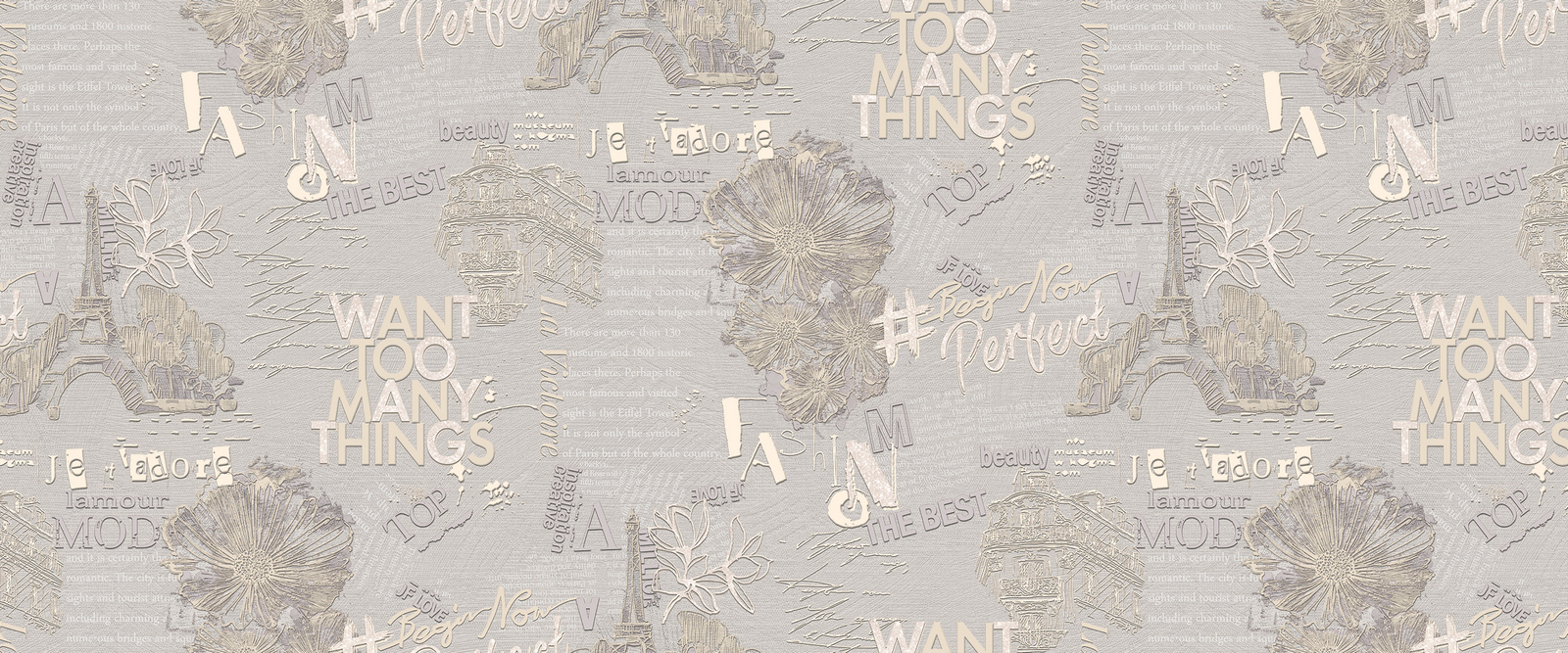 В основе коллекции лежит потрясающая текстильная штукатурка, да, Вы, правильно поняли, дизайнеры соединили пластику линий, рельеф венецианской штукатурки и структурность текстильной фактуры. Благородный монохром в сочетании с рельефным тиснением - разными по блеску - придутся по вкусу даже самым искушенным эстетам!