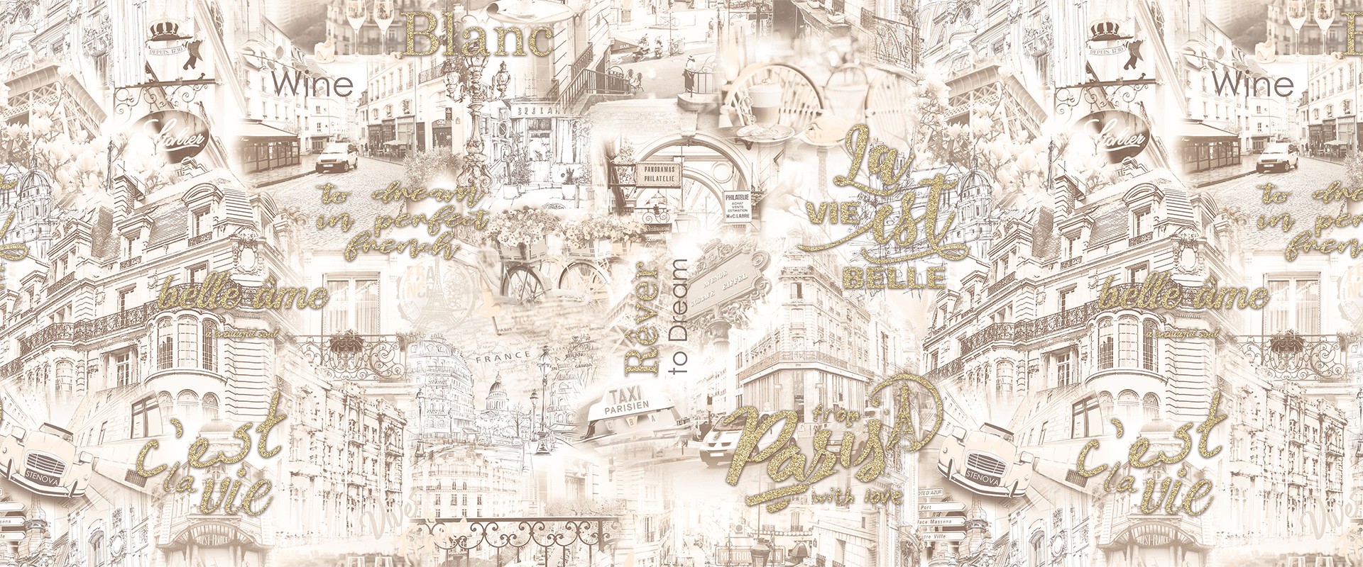 Матовая, очень приятная текстильная основа с четкими чистыми красками идеально сочетается с искрящимися, словно вышитыми золотом или платиной фразами: c’est la vie - такова жизнь, rever - мечтать, la vie est belle - жизнь прекрасна, belle ame - красивая душа и from Paris with love - из Парижа с любовью.