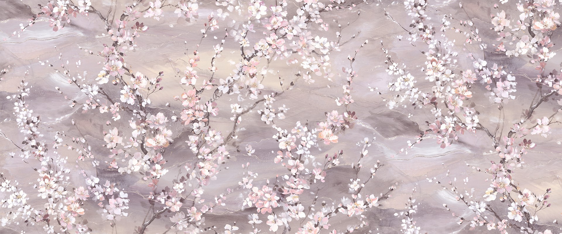 Великолепная сакура, нарисованная по принципу «белые цветы-цветная основа», призвана обогатить отделку стен и при использовании нейтральных базовых цветов и фактур призвана облегчить выбор в подборе остальных предметов интерьера и мебели. Таким образом, получается модное, акцентное, персонализированное пространство.