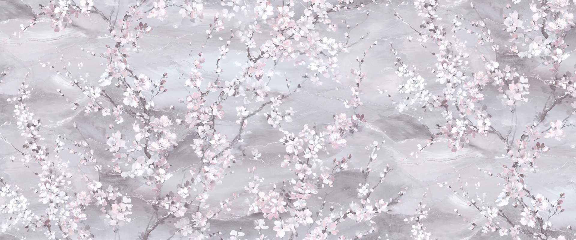 Великолепная сакура, нарисованная по принципу «белые цветы-цветная основа», призвана обогатить отделку стен и при использовании нейтральных базовых цветов и фактур призвана облегчить выбор в подборе остальных предметов интерьера и мебели. Таким образом, получается модное, акцентное, персонализированное пространство.