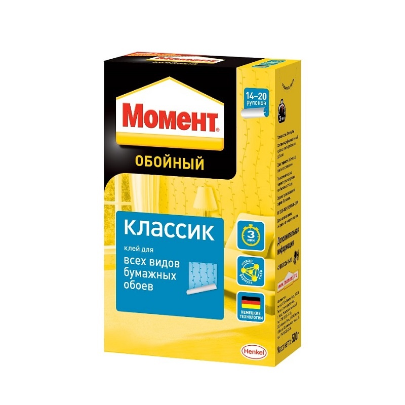 Предназначен для наклеивания всех видов бумажных обоев: гладких, структурных, гофрированных, дуплексных, тяжелых, также подходит для виниловых и других специальных обоев. Расход 150-250 мл/м². Количество рулонов (стандартный рулон обоев 10,05*0,53м): Легкие бумажные однослойные обои: 19-20 Тяжелые бумажные обои, структурные, грубоволокнистые, пенообои: 14-15 Обои дуплекс, гофрированные, моющиеся, потолочные: 16-18