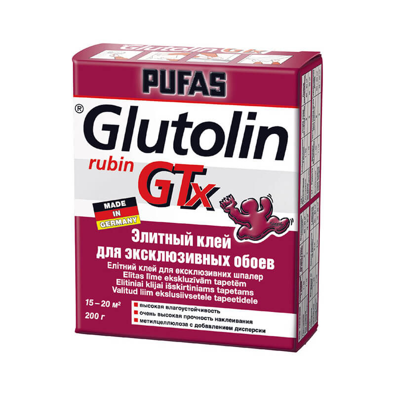 Высококачественный метилцеллюлозный клей для наклеивания всех очень тяжёлых настенных покрытий посредством нанесения клея как на стену, так и традиционным способом на обои. Надёжный клей для всех дорогих элитных с экслюзивным дизайном обоев. Пригоден также для обойно-смазочных приборов. Устойчив к цементу и извести. Расход: 25 - 30м².