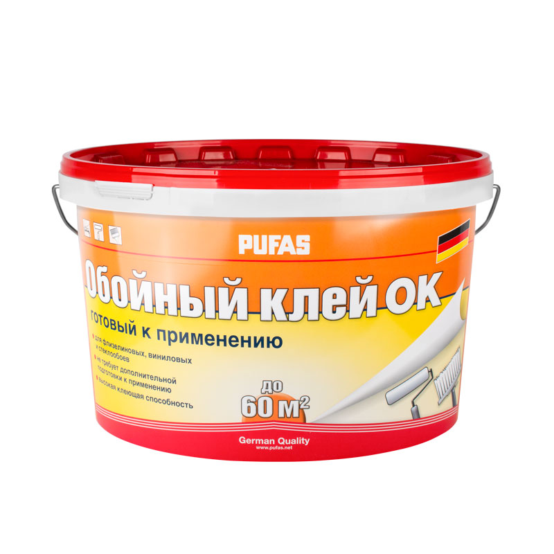 Готовый к использованию клей для приклеивания всех видов обоев, не боится влаги в процессе эксплуатации. Не требует наличия воды на объекте, исключает ошибки в приготовлении клея. Нейтральная реакция pH исключает появление желтых пятен на обоях. Расход: 1 кг/6 м² (150 г/м²), 60 м²/10 кг ведро.