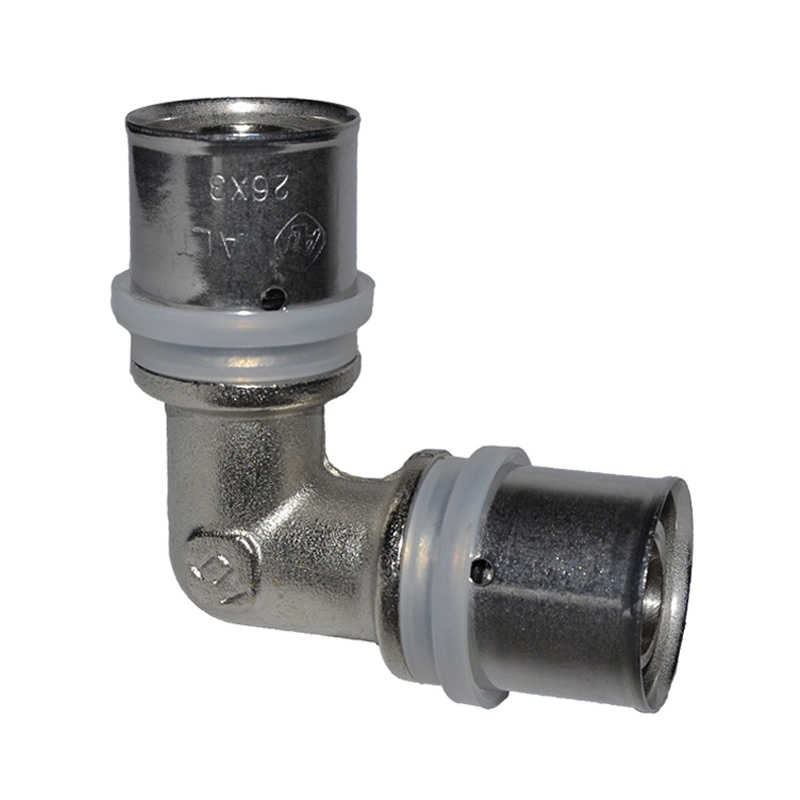 Предназначен для соединения металлопластиковых труб диаметром 26 мм под углом 90 градусов. Устанавливается (опрессовывается) с помощью специального инструмента - пресс-клещей.