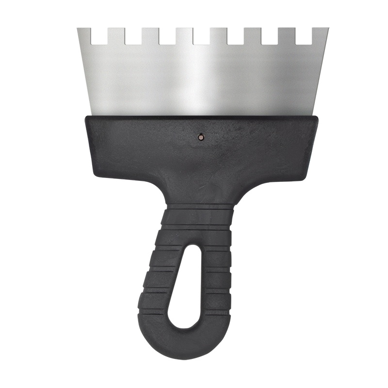 Предназначен для нанесения и выравнивания строительных смесей. Зубчатое полотно из нержавеющей стали. Рукоятка из пластмассы.