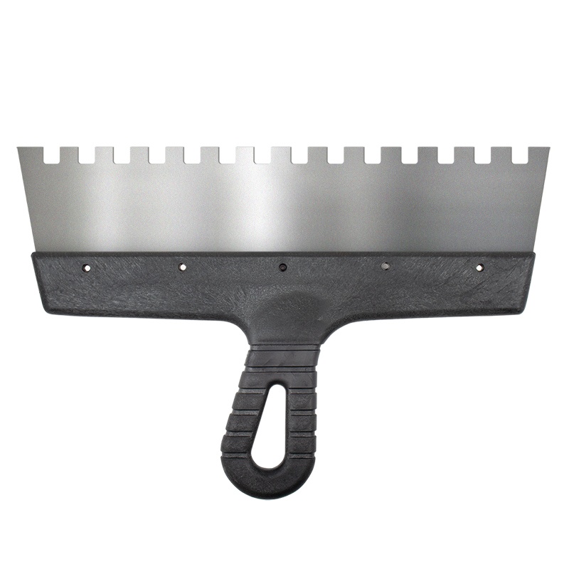 Предназначен для нанесения и выравнивания строительных смесей. Зубчатое полотно из нержавеющей стали. Рукоятка из пластмассы.