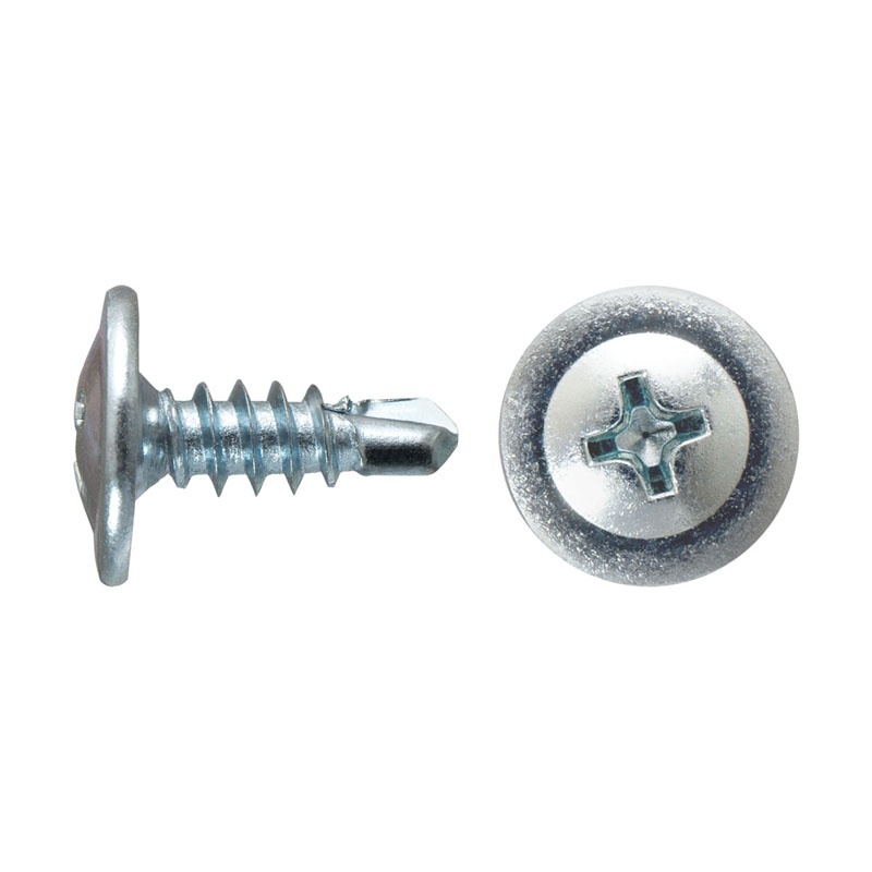 Саморез используется для крепления листов металла толщиной до 2 мм без предварительного сверления. Имеет галетную головку с пресс-шайбой, крестообразный шлиц Phillips №2, наконечник - сверло.