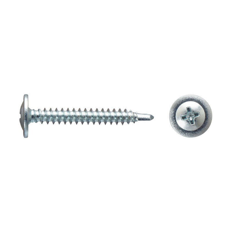 Саморез используется для крепления листов металла толщиной до 2 мм без предварительного сверления. Имеет галетную головку с пресс-шайбой, крестообразный шлиц Phillips №2, наконечник - сверло.