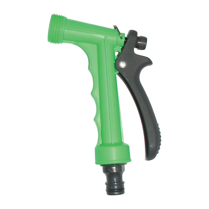 Предназначен для направленного полива растений. Подключается к поливочному шлангу с помощью соединителя. Имеется регулировка типа струи, курок с фиксатором для непрерывного полива.