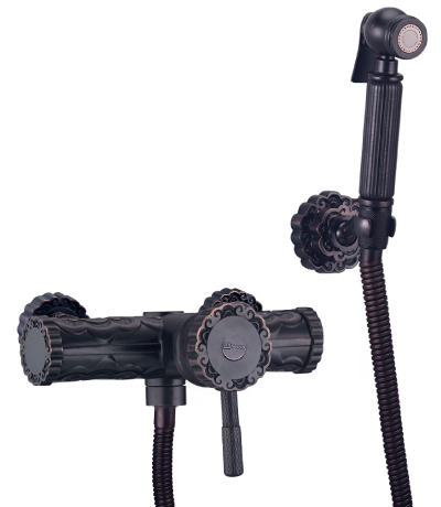 Смеситель биде LEMARK Жасмин с гигиен. душем, настенный, черная бронза LM6618ORB