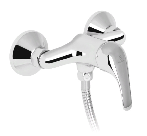 Смеситель для душа Mofem Junior 402 представляет собой конструкцию с одной ручкой для настенного монтажа, изготовлен из высококачественной хромированной латуни, смешивание холодной и горячей воды с помощью керамического картриджа диаметром 35 мм, ручка металлическая. В комплект смесителя эксцентрики, декоративные отражатели, душевая лейка с настенным креплением и гибкий шланг длиной 1,5 м.