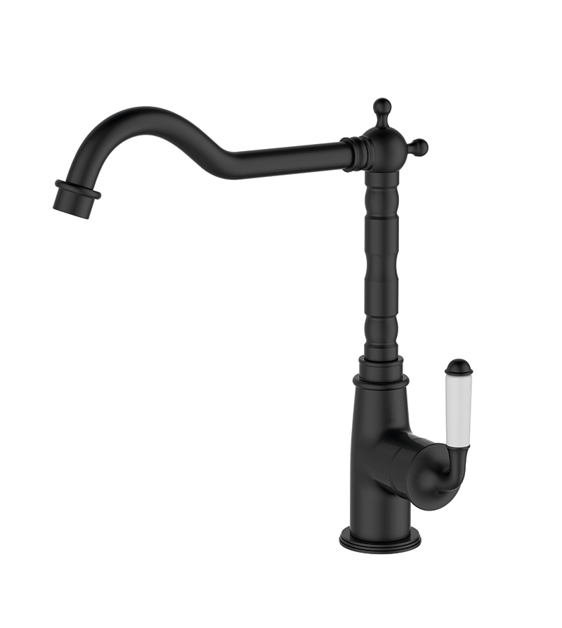Смеситель для кухни ESKO Florence FR03B изготовлен из высококачественной латуни категории А с устойчивым черным матовым PVD-покрытием и предназначен для использования в кухонных мойках. Смешивание воды с помощью керамического картриджа диаметром 35 мм, подключение к водоснабжению 1/2", длина L-образного поворотного излива 230 мм, высота 242 мм, излив снабжен аэратором Neoperl с функцией экономии воды. В комплекте гибкая подводка 40 см для подключения воды и крепление Fastfix.