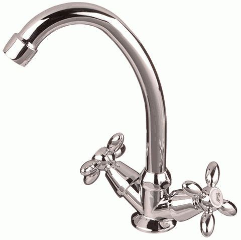 Смеситель кухня Ex-Promt Крест Ex 102.1-01Z силумин (без подводки cмеситель для кухни двуручковый с керамической кран-буксой Ex-Promt ручка "Крест" Ex 102.1-01Z , облегченный сплав (без подводки)