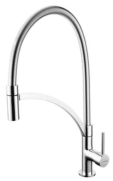 Смеситель для мойки с гибким изливом Maestro BMS4-12 польского бренда сантехники Ferro изготавливают из высококачественной латуни с последующим нанесением защитного хромированного покрытия.
