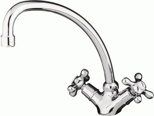 Смеситель для кухни MELODIA Galateo MDV 40205 изготовлен из хромированной латуни, с высоким поворотным изливом, смешивание воды происходит с помощью двух маховиков с керамическими кран-буксами, без гибкой подводки. Гарантия 5 лет